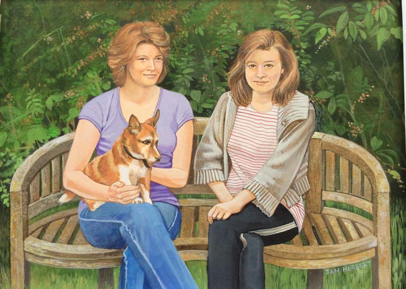 I enjoy working on portraits of people, animals and houses, or a combination of all three.